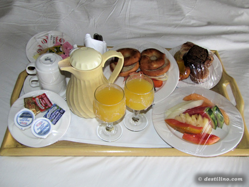 Au buffet de l'hôtel ainsi qu'au resto italien, le système est le même, on choisit le repas principal « à la carte » puis il y a un buffet pour soupes, salades et dessert. Il y a toujours deux choix de vins rouge et blanc chiliens. Il est bon sans être un grand cru. Pour les restos à la carte, il faut réserver notre place à l'avance, mais comme l'hôtel n'était pas plein, nous sommes retournés au français et japonais à deux reprises ayant une réservation faite le jour même.