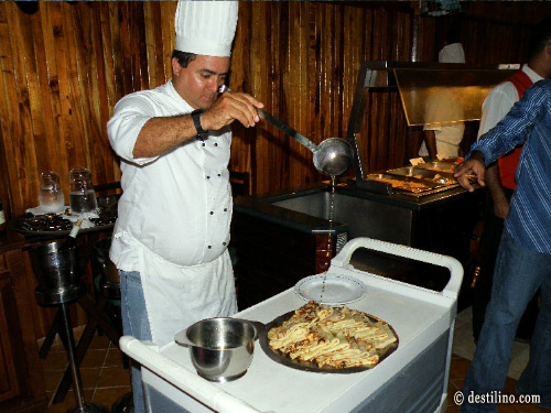 Servi avec un vin rouge d'Espagne (Torres) et suivi d'un choix de digestif. Le tout dans un environnement musical de musique cubaine du groupe Integracion. Le chanteur surnommé « Papi » s'est joint au groupe pour agrémenter cette belle soirée.