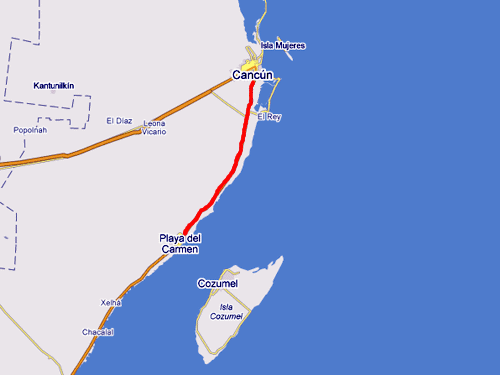 De Cancún, nous prenons la direction sud sur la « Carretera Fedral 307 » en direction de Playa del Carmen.