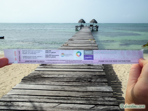 bracelet au cout de 50 pesos à l'hôtel. L'argent va aux autorités mexicaines pour la préservation de cet immense parc naturel. Le bracelet est résistant à l'eau.