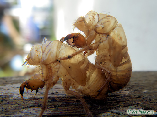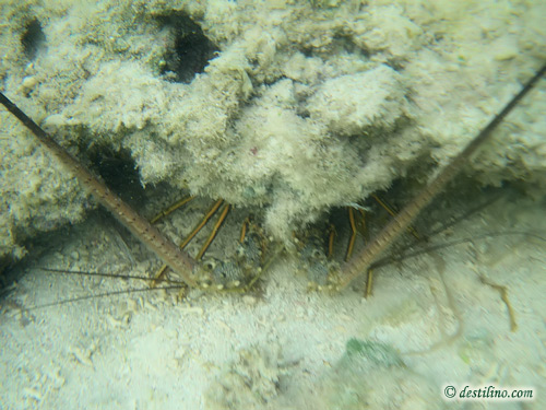 langoustes qui se battent pour le meilleur « spot » pour se cacher! Ah oui, c'est la saison des mues, car plusieurs insectes changent de carapaces et nous trouvons des anciennes carapaces partout attachées aux arbres. Un fait cocasse, ces insectes ne choisissent pas quand la mue s'effectue même s'ils sont