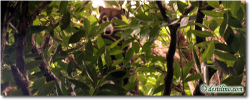 Aujourd'hui c'est la farniente à l'hôtel pour notre dernière journée. En marchant dans le sentier pour se rendre au buffet pour déjeuner, nous avons rencontré un joli petit « toutou » grimpé en haut d'un arbre. Je pense que c'est un coati. Voici sa photo...