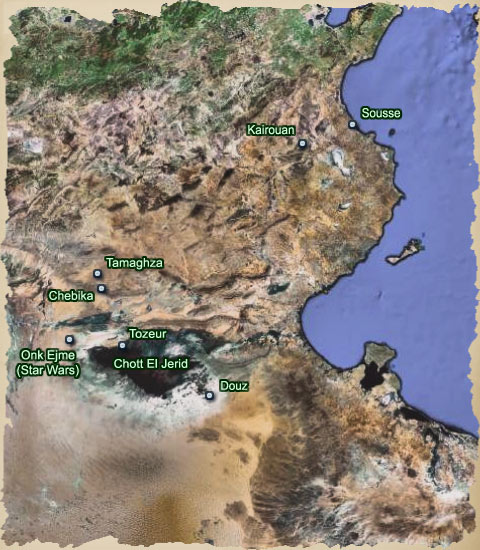 Départ @ 7 h 30 pour la visite des potiers du quartier de Guellela sur l'île de Djerba. Nous empruntons l'ancienne voie romaine pour quitter Djerba. Visite de la ville Medenine, Ksours berbère de Ghorfa. En route vers le désert, nous découvrons les magnifiques montagnes de Dharer. Diner à Matmata. Visite d'une maison typique berbère. Arrivé à Douz, c'est la balade dans le désert du Sahara à dos de dromadaire. Arrivée à l'hôtel Touareg. Souper spécial offert par le ministère du tourisme tunisien. Soirée thématique berbère à l'hôtel El Mouradi Douz.
