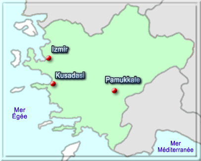 • 3 heures de route pour se rendre à Pamukkale (château de coton). L'immense site d'eau thermale avec les coulées de calcaire.