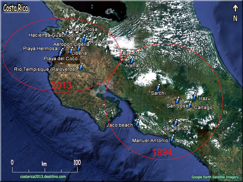 Lors de notre premier séjour au Costa Rica fut en 1994, nous étions dans le secteur central du pays. Nous avons visité les villes (et villages) de San Jose, Cartago, Sarchi, Jaco beach, Manuel Antonio ainsi que les volcans Irazu et Arenal. Nous n'avons que de bons souvenirs de ce petit pays de l'Amérique centrale. Les « Ticos » et les « Ticas » sont des gens souriants et aimables. Le Costa Rica est un des rares pays où l'eau y est potable! Nous avons adoré retourner au Costa Rica. Cette fois-ci dans la province du Guanacaste.