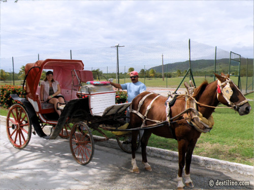 | Ce n'est pas une excursion organisée, on peut s'y rendre à pied ou en calèche (4 CUC/pers.). Si tel est votre choix, le cocher vous amènera à la chute (17 min) et vous aurez environ 1½ heures de libre pour vous baigner. L'eau est plus chaude que celle de Las Yaguas. Comme il s'agît d'un endroit public, ne soyez pas surpris de voir des Cubains vous approchez pour vous vendre colliers, artisanats et autres. C'est un bon endroit si vous désirez donner vos petits cadeaux et soyez sur que sera très apprécié! |