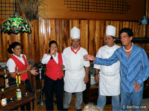 Servi avec un vin rouge d'Espagne (Torres) et suivi d'un choix de digestif. Le tout dans un environnement musical de musique cubaine du groupe Integracion. Le chanteur surnommé « Papi » s'est joint au groupe pour agrémenter cette belle soirée.