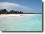 L'hôtel est situé sur une des plus belles plages de la région. La mer est peu agitée, le sable doux et blanc et la pente est faible. On pourrait facilement dire que la plage est... parfaite! Les amateurs du monde marin aimeront bien nourrir les poissons qui s'aventurent près de plage. Nous n'avons pu résister à la tentation d'apporter quelques morceaux de pain. Ce sont des bancs de Palometa. On peut les nourrir sans danger, car ils n'ont pas dents, mais plutôt du cartilage.