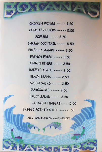 Voici quelques photos (cliquables) du menu du Costa de Cocos ...