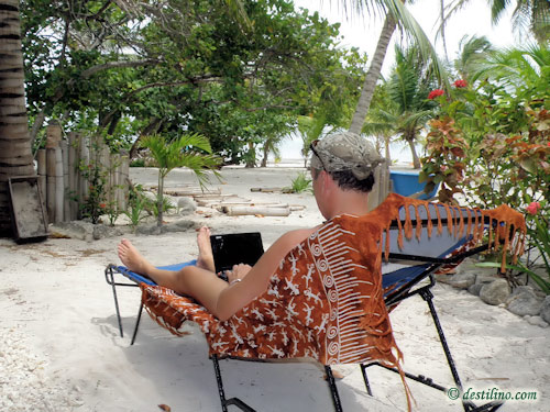 En après-midi, on relaxe à Playa Sonrisa. Malgré que nous sommes dans un petit coin perdu du Mexique, nous utilisons la connexion internet wi-fi de Murph et Cindy pour envoyer un courriel à nos amis avec photo de nous deux sur le quai. L'Internet est très dispendieux dans ce coin de pays, car la connexion est satellite. Ils ont aménagé une chaise longue près du resto ou il est possible d'accéder le web, la connexion n'est pas très rapide, mais suffisante pour faire parvenir un court courriel ainsi qu’une petite photo de nous. C'est beau la technologie :o)