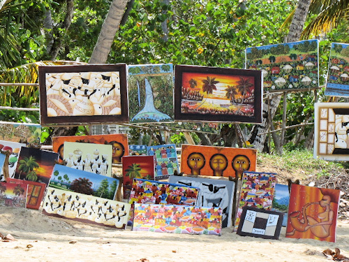 Vous trouverez presque partout des tableaux Haïtiens (et non dominicains). On les reconnait aisément aux couleurs et aux motifs primitifs. Si vous achetez des toiles faites les enlever de leurs cadres et transportez roulées.