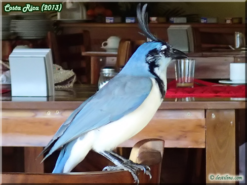 Nous avons bien ri au déjeuner lorsqu'un White-throated Magpie-Jay la version costaricaine de nos Geais bleus, est venu se poser sur le dossier d'une chaise au buffet à la recherche de nourriture, mais pas n'importe quoi, des petits sacs de sucre à café! Pourtant il y a tellement de bons fruits au Costa Rica.