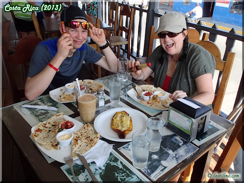 À notre retour, nous décidons d'aller diner dans un resto de Liberia, El Zaguan. Un bon choix, la nourriture est bonne et la cerveza Imperial bien froide :o) Nous optons pour les quesadillas. Nous avons vu un groupe de touristes prendre le lunch à ce restaurant de Liberia. Peut-être que ce resto est populaire des organisateurs de visiteurs de la région?
