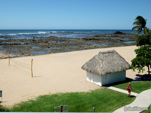 plage de l'hôtel Decameron Salinitas, d'une longueur approximative d'un kilomètre, est divisée en deux sections par la piscine d'eau salée. Le sable est beige et la marche y est agréable.
