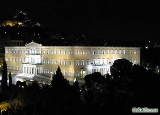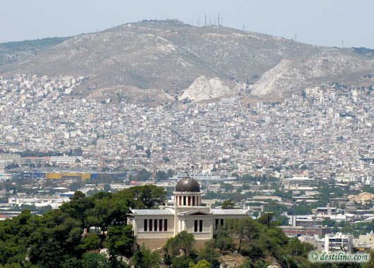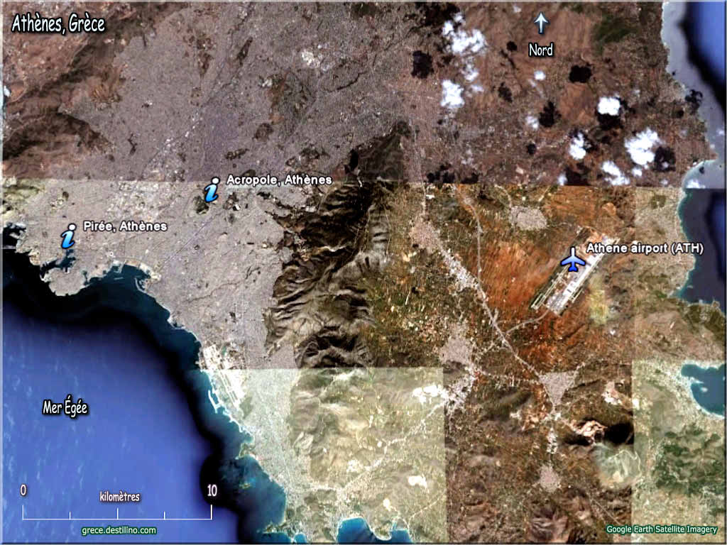 Athènes s'étend sur la plaine d'Attique, dominée par le mont Ægialée à l'Ouest, le mont Parnès au nord, le mont Lycabette au nord-est (faisant partie de chaîne Pentélique), le mont Hymette à l'est, et le golfe Saronique au sud-ouest. La géomorphologie d'Athènes contribue beaucoup aux problèmes de pollution atmosphérique dont elle souffre aujourd'hui (Los Angeles aux États-Unis connaît la même géomorphologie et les mêmes conséquences).