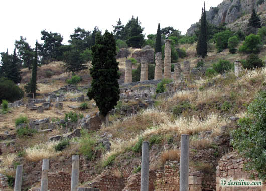 Au pied du mont Parnasse en Phocide, Delphes est le site d'un sanctuaire panhellénique où parlait l'oracle d'Apollon à travers sa prophétesse, la Pythie ; il abritait également l'Omphalos ou « nombril du monde ». En harmonie avec une nature superbe, investi d'une signification sacrée, Delphes fut du VIe siècle av. J.-C. au IVe siècle av. J.-C. le véritable centre et le symbole de l'unité du monde grec.