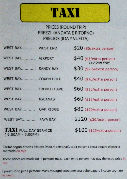 À noter qu'il est possible de prendre un taxi pour visiter l'île ou pour se rendre à plusieurs endroits sur l'île. Cliquer ICI pour voir les prix.